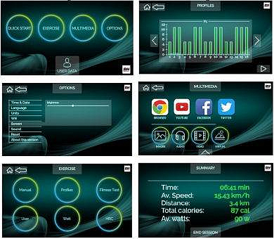 | Programové režimy: | Ruční regulace zátěže, Přednastavené profily trati, Program řízený tepem HRC, Zadání cílových hodnot, Uživatelsky nastavitelné programy |