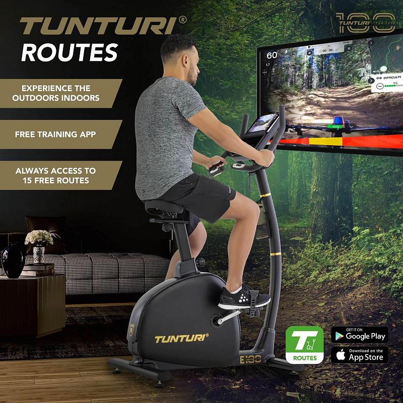 Odpor vašeho trenažéru Tunturi se automaticky synchronizuje s výškovými rozdíly ve videu, takže se zážitek stane ještě více zážitkovým.