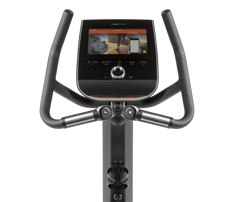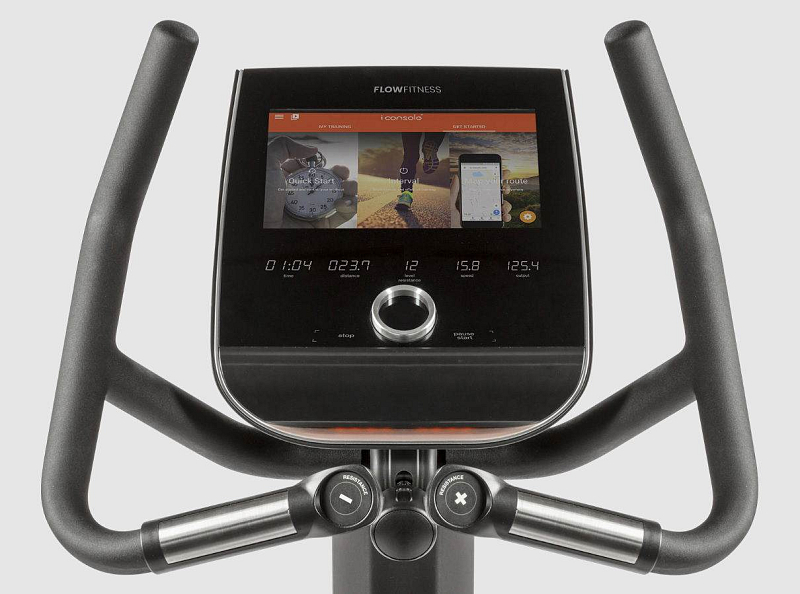 Rotoped Flow Fitness B5s je vybaven moderním SMART HD dotykovým displejem, bluetooth přijímačem a USB portem pro nabíjení. Dále disponuje senzory pro měření pulsu, transportními kolečky, vyrovnávači nerovnosti a držákem na lahev.