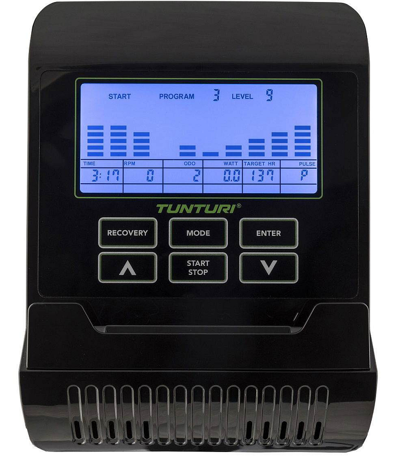 Tunturi StarFit E100 disponuje počítačem s bohatou nabídkou programů a držákem na tablet. Dále je vybaven transportními kolečky pro snadnou manipulaci, vyrovnávači nerovnosti pro maximální stabilitu a držákem na lahev pro osvěžení při tréninku.