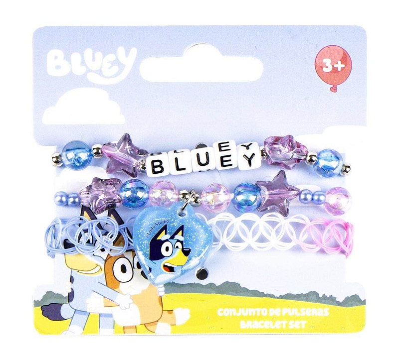 Sada 3 ks náramků s motivem Bluye. Rozměry balení: 9 x 9 cm. Pro děti od tří let. Výrobce: Cerda. ARTESANÍA CERDÁ, S.L.E-46850 LOleria, Valencia, Spaininfo@cerdagroup.com