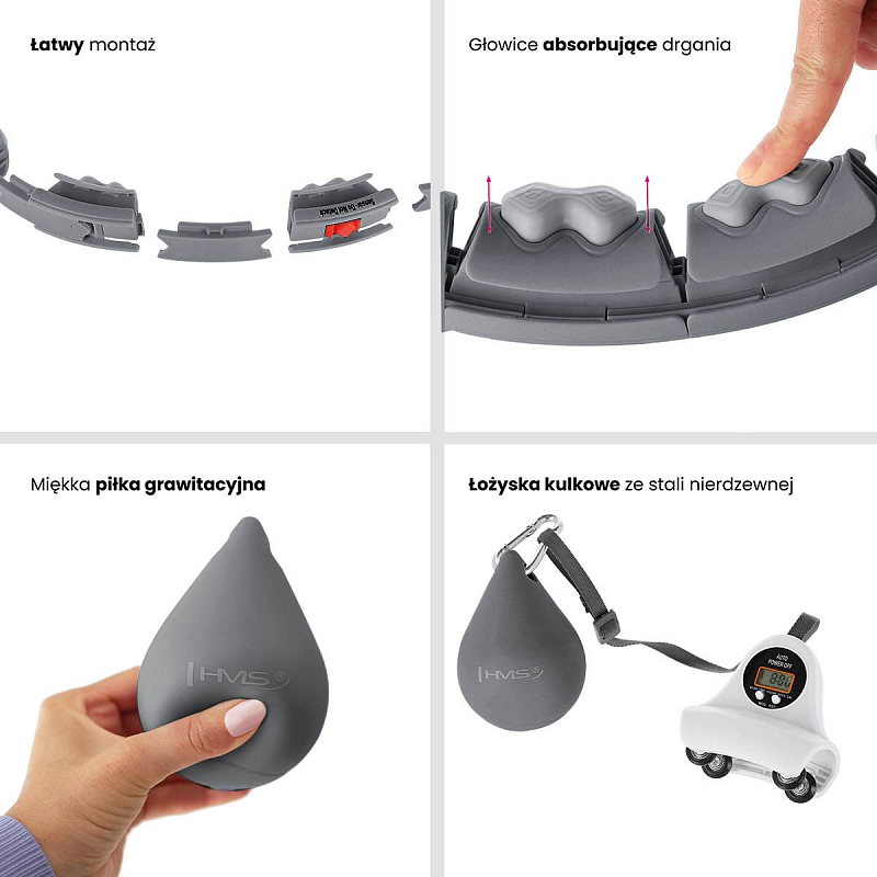 HMS HHW06 je hula hop obruč s nastavitelnou délkou, masážními výstupky, počítadlem a rotujícím závažím.