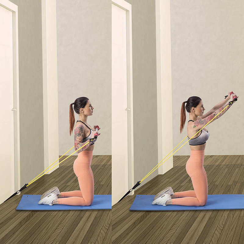 Jako příklad uvadíme cvik, kdy se na tyč postavíte a expadnéry přitahujete směrem k tělu. Případně si rukojeti expandérů nasadíme na chodidal a přitahujeme tyč.