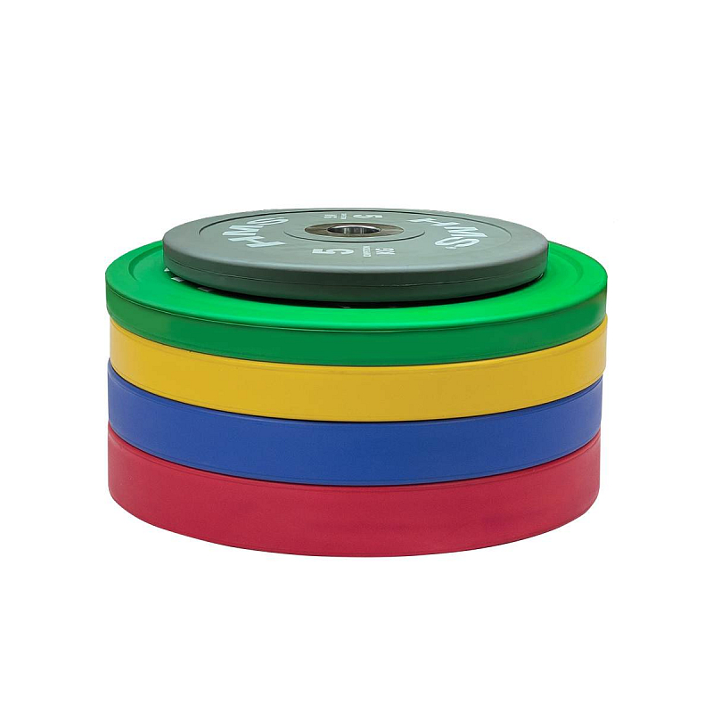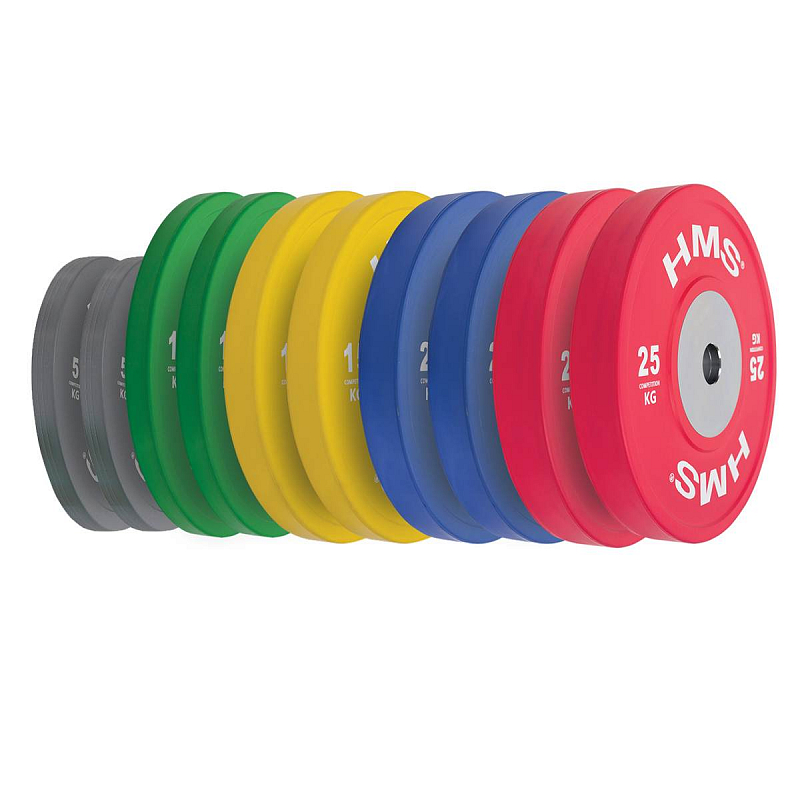 Set oympíjských kotoučů HMS vhodný pro závody ve vzpěračství a při funkčním tréninku. Tento set je zbarven přesně podle závodních norem. Jeho hlavním parametrem je odolnost, kdy i po odhodu z velké výšky, zůstane kotouč i podloží bez známky poškození. Kotouč je určen pro olympijské osy s průměrem trnů 50 mm.