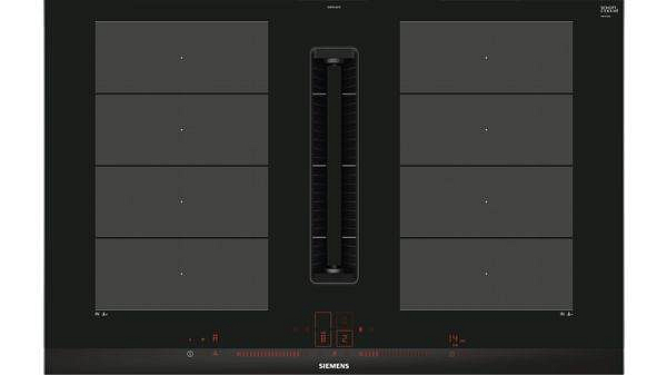 indukční varná deska s odsáváním, 80 cm, 2 zóny flexIndukce, cookingSensor Plus ready, fryingSensor Plus, fazetový design - nerez, ovládání Dual lightSlider, MoveMode, Home Connect, PanBoost, PowerBoost, dětská pojistka, 2stupňový ukazatel zbytkového tepla pro každou varnou zónu, příkon: 7,4 kW; odsavač par: iQdrive motor, climateControl Sensor - plně automatické nastavení odtahu, normální stupeň 500m3/hod, intenzivní stupeň 622m3/hod, hlučnost odsávání při normálním stupni min./max.: 42/74 dB