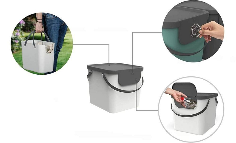 Úložný box s víkem a madlem - ideální jako systém na třídění odpadu či jako úložný box na menší předměty.