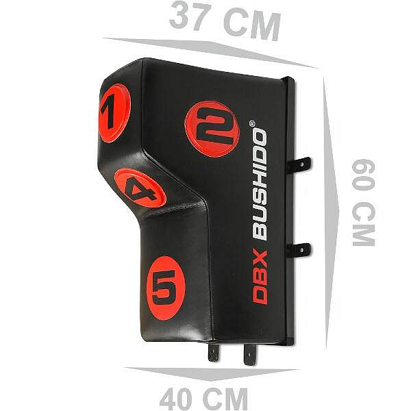 Úderový terč DBX BUSHIDO DBX-W-10B s kónickým výstupkem je určený pro trénink háků a úderů lokty a koleny. Optimální rozměry terče zajišťují pohodlný trénink a odolný materiál je zárukou dlouhé trvanlivosti i při velice intenzivním tréninku. Tréninkový terč je ideálním doplňkem ke klasickému boxovacímu pytli. Model DBX-W-10B navíc disponuje 5-ti terči označenými čísly, které se využívají během tréninku s trenérem, který cvičenci zadává postupně body, do kterých má udeřit.