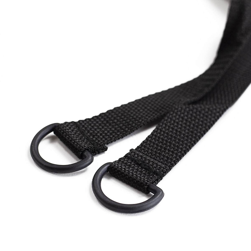 Příčky je možné plynule posouvat a po nastavení vhodných rozestupů je možné příčky zafixovat pomocí dvou otvorů v každé z nich. Konce řemínků jsou opatřeny očky pro zajištění proti posunutí žebříku.