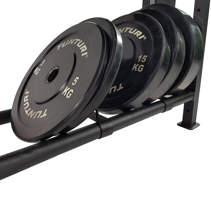 Rádi trénujete s různými druhy závaží? Pak si všechny své fitness produkty ukliďte do tohoto multifunkčního stojanu Tunturi. Díky němu bude váš fitness prostor bezpečný a přehledný. Ve spodní části stojanu je prostor pro různé zátěžové desky. Činky jsou uloženy na prostřední polici a nahoře je prostor pro nástěnné míče. Úložný regál zabírá velmi málo místa díky kompaktní konstrukci s různými policemi. Užitečné mít doma i v posilovně. Stojan je velmi robustní a snadno unese velkou zátěž.