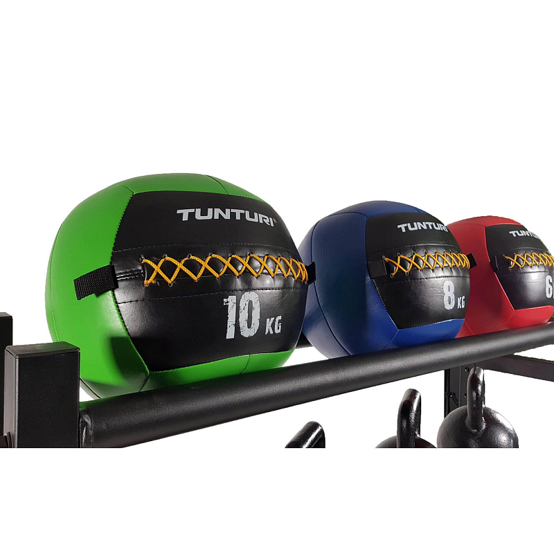 Výhody víceúčelového úložného stojanu Tunturi na nástěnné míče - kettebells - zátěžové desky
