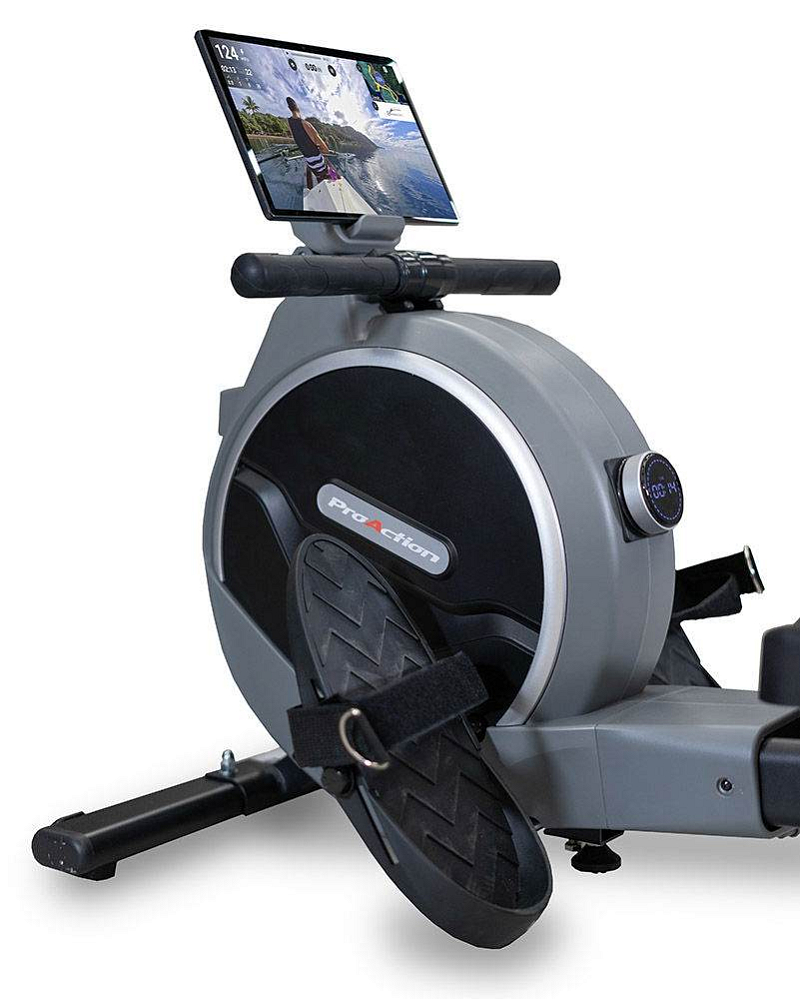 • Díky praktickému držáku na tablet, či smartphone si můžete při veslování pouštět svou oblíbenou hudbu, či YouTube kanál, nebo využívat tréninkové aplikace - Kinomap (pro Android, iOS), MyHomeFIT (pouze Android) (Tréninkové aplikace jsou produktem třetí strany a neneseme odpovědnost za jejich funkčnost. Pokud byste měli samozřejmě jakýkoliv dotaz, rádi vám poradíme.) Vyobrazený tablet není součástí dodávky.