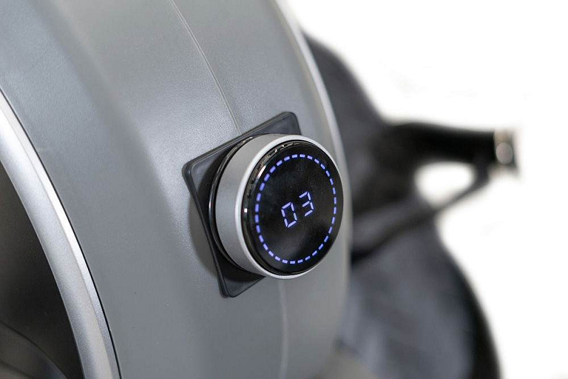 Setrvačník s hmotností 5,5 kg a moderní magnetická brzda zajišťují, že trenažér má komfortní, plynulý a zcela tichý chod i při větších zátěžích. Nastavení odporu se provádí elektronicky v 32 úrovních. Správný pohyb při veslování zajišťuje ergonomicky tvarované sedadlo a protiskluzové nášlapy s nastavitelnými řemínky.