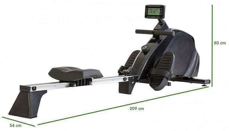 - Masivní konstrukce stroje - veslovací trenažér se stabilní, dostatečně velkou konstrukcí vyhovující na drobné i urostlejší postavy do 195 cm.