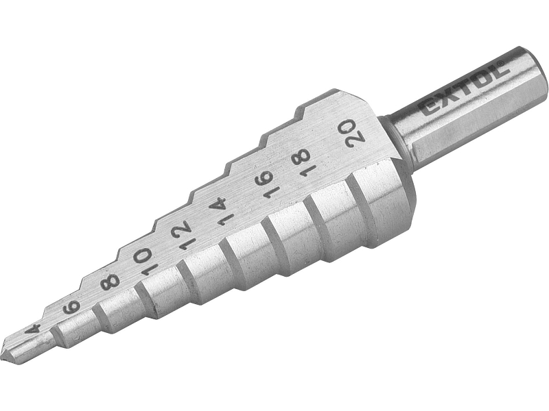 Úvodní strana > Doplňkový sortiment > vrták stupňovitý, O 4-20mm/po 2mm, HSS-M2