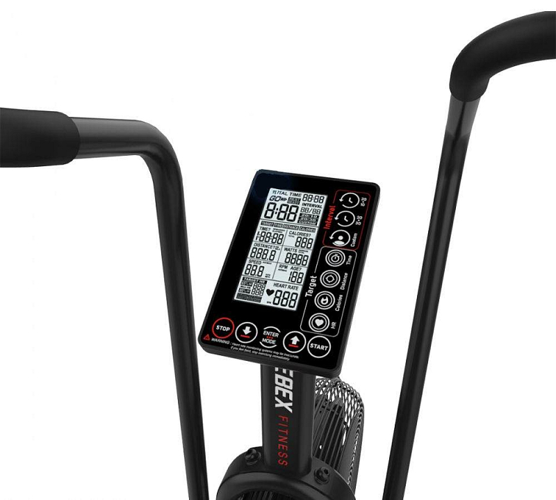 Samotný XEBEX Air Bike 1000 disponuje LCD displejem, který nabízí několik tréninkových režimů. Zobrazuje hodnoty času, vzdálenosti, RPM, spálené kalorie, výkonu a tepové frekvence. Tepová frekvence je snímatelná hrudním pásem.