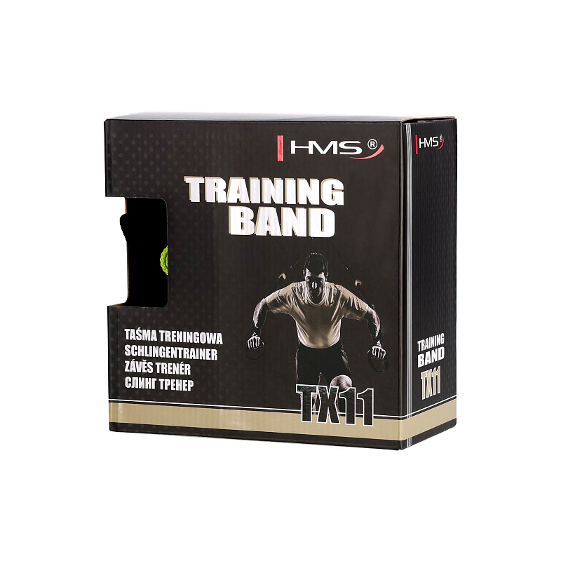 Závěsný posilovací systém HMS TX11 je víceúčelová sada poruhů fungující na principu posilování s vlastní hmotností, systém lze snadno uchytit jak do dveří, tak díky karabině do jakéhokoliv prostoru. Konce těchto popruhů jsou opatřeny měkkými úchopy pro ruce a nohy. Jednoduchý, ale velmi efektivní systém posilování proti vlastní hmotnosti se stal rychle velice oblíbeným u všech typů uživatelů. Toto ražízení si zalíbili i profesionální sportovci, kteří se závěsným zařízením nabírají kondici na sezónu. Hlavními přednostmi posilovače soupravy TX11 jsou nízké pořizovací náklady, vysoká účinnost a nenáročnost na skladování.